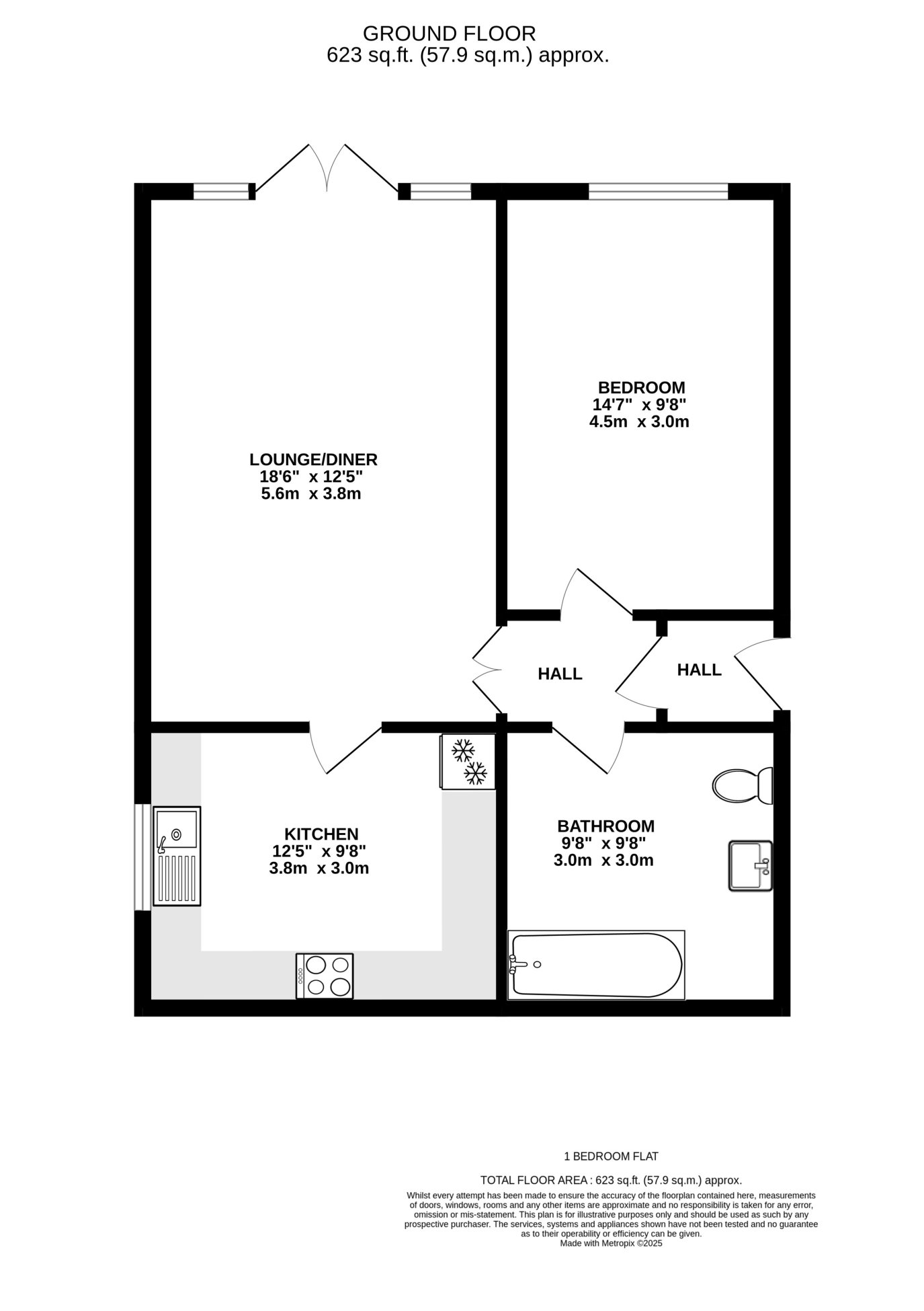 (Floorplan is the same as the property on the gound floor but has no access to to the garden as shown)